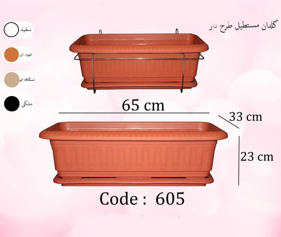 ویژگیها: سوراخ زهکش، مقاوم در برابر یخزدگی و UV، رنگ ثابت